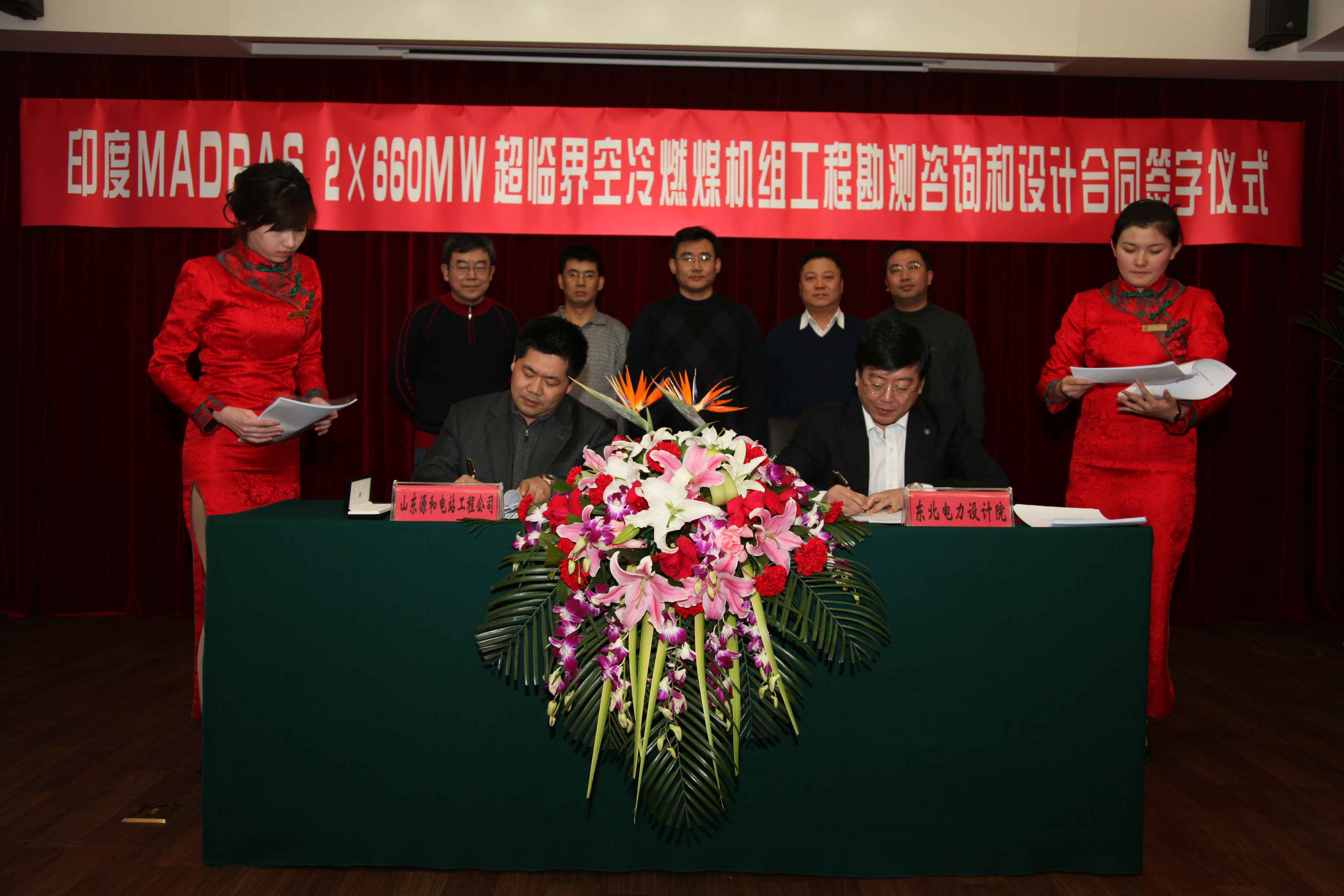 2010年1月,经过细致的沟通与协商,源和与东北电力设计院签订印度2 X 660 MW 超临界空冷燃煤机组工程勘探咨询和设计合同。